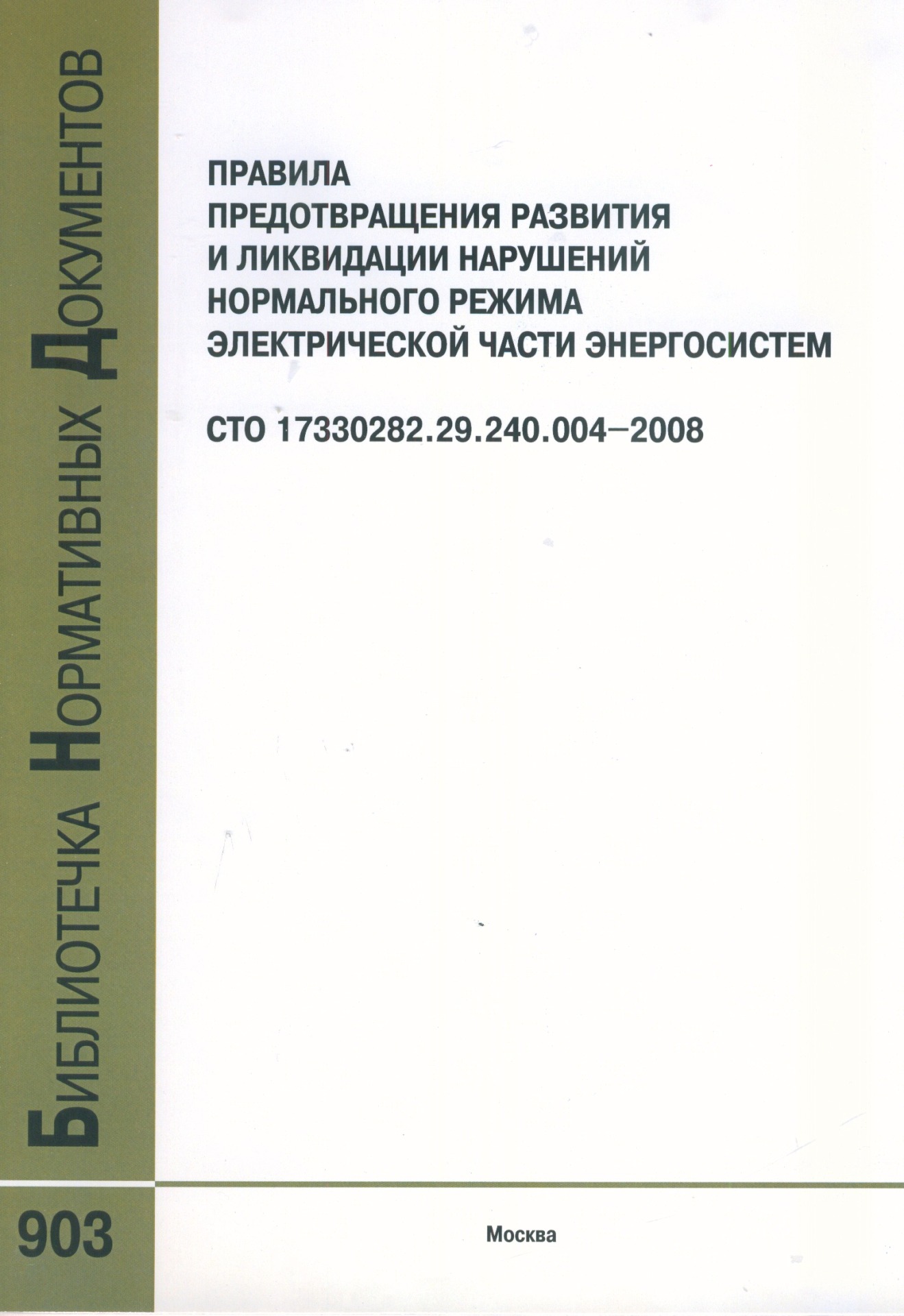 правила предотвращения развития и ликвидации нарушений нормального режима электрической части энергосистем. СТО 17330282.29.240.004-2008.