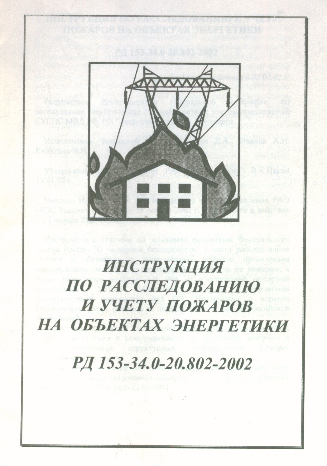 Инструкция по расследованию и учету пожаров,на объектах энергетики РД 153-34.0-20,802-99 .