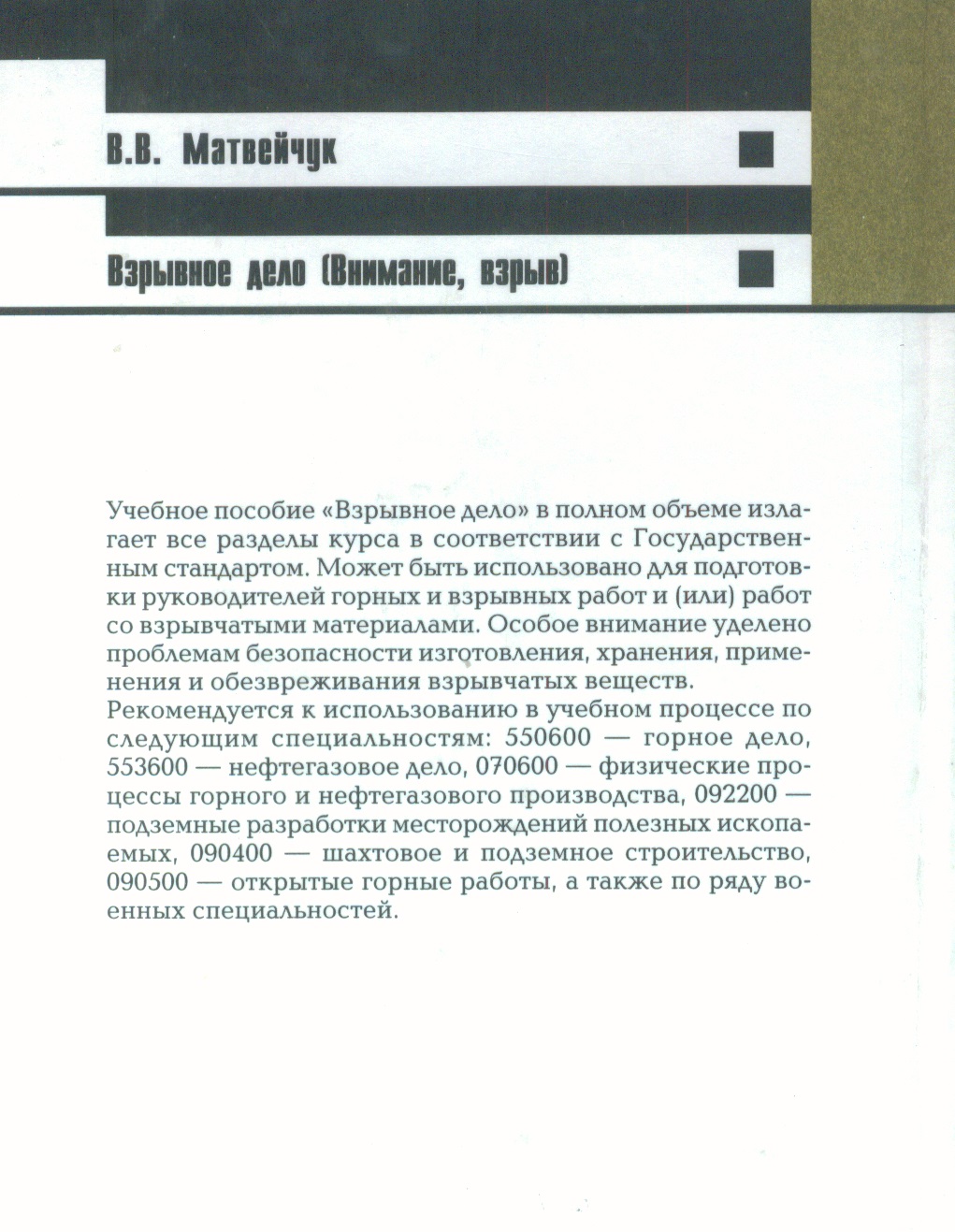 взрывные работы. Учебное пособие. в.в.матвейчук, в.п.чурсалов
