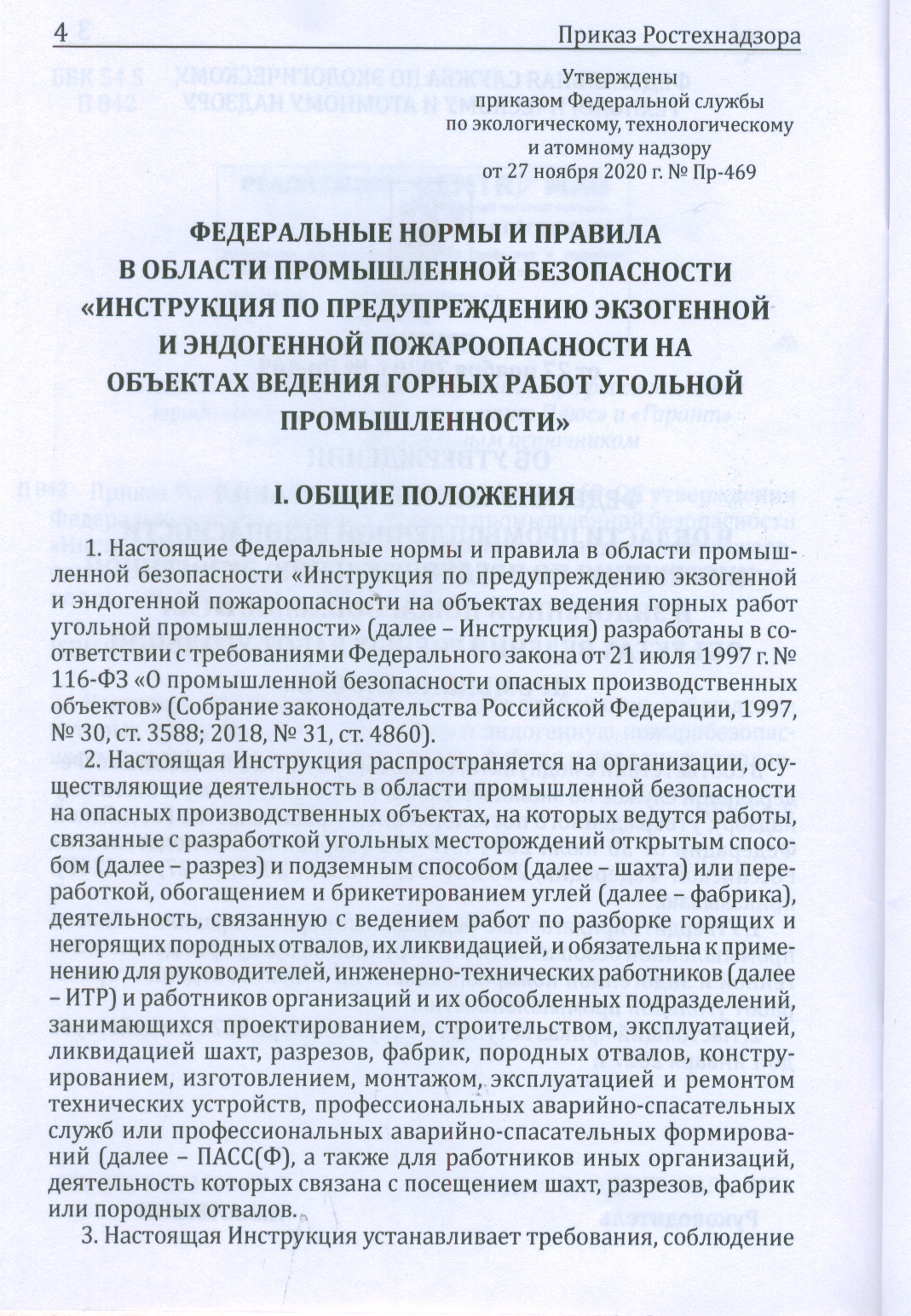 ФЕДЕРАЛЬНЫЕ НОРМЫ И ПРАВИЛА В ОБЛАСТИ ПРОМЫШЛЕННОЙ БЕЗОПАСНОСТИ "инструкция по предупреждению экзогенной и эндогенной пожароопасности на объектах ведения горных работр угольной промышленности".
