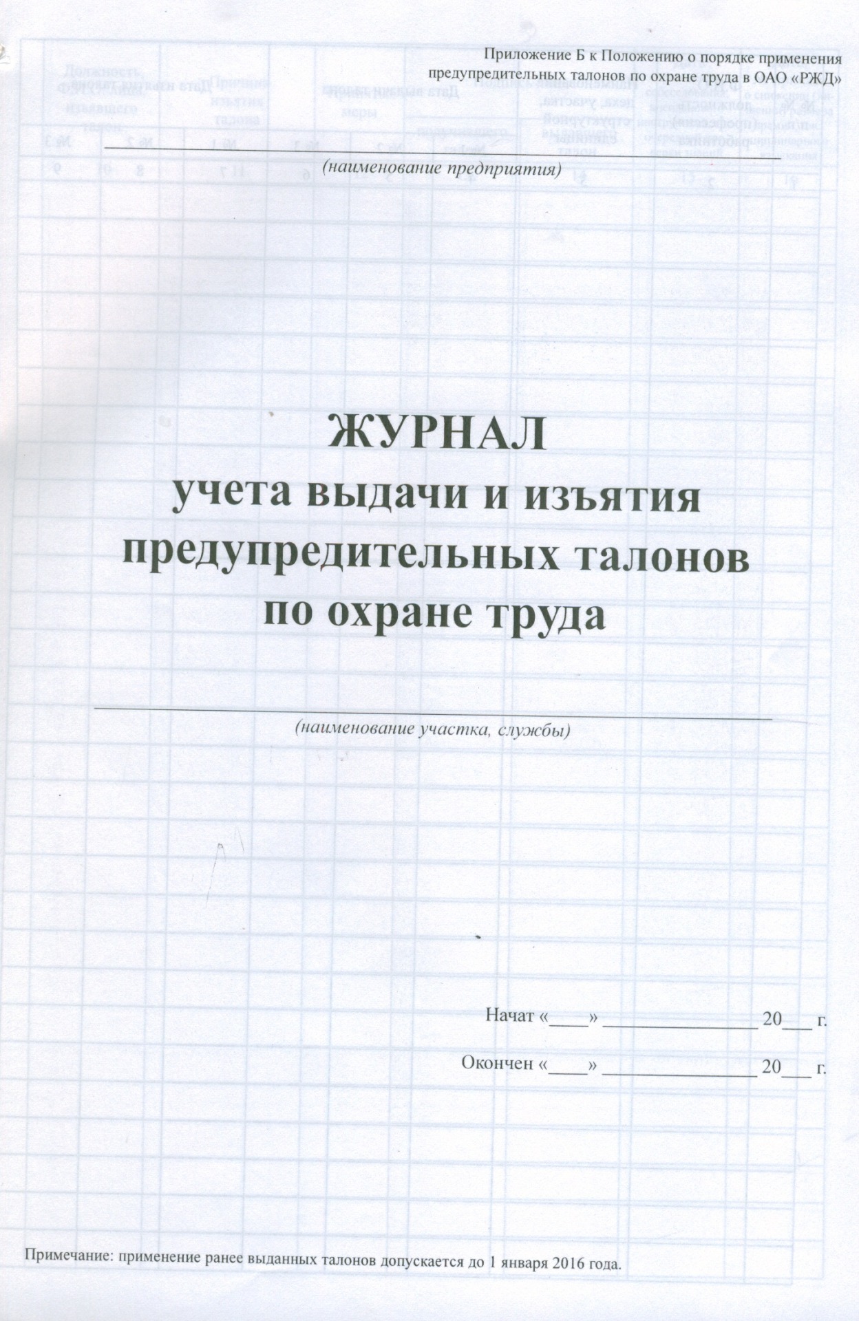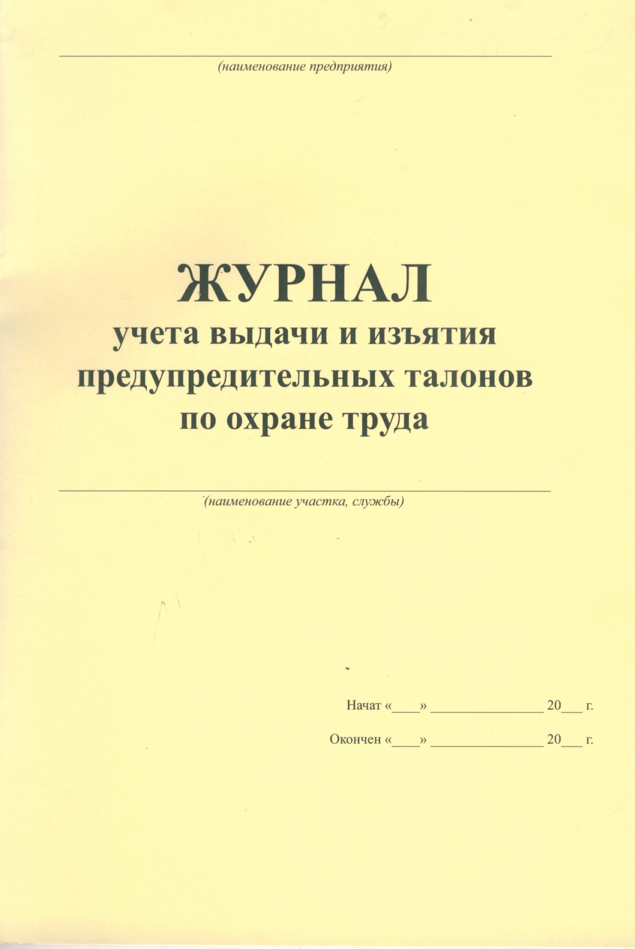 Журнал учета выдачи и изъятия предупредительных талонов по Охране Труда,100стр, прошит